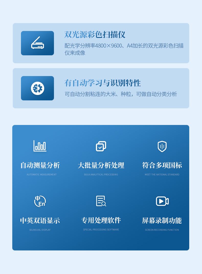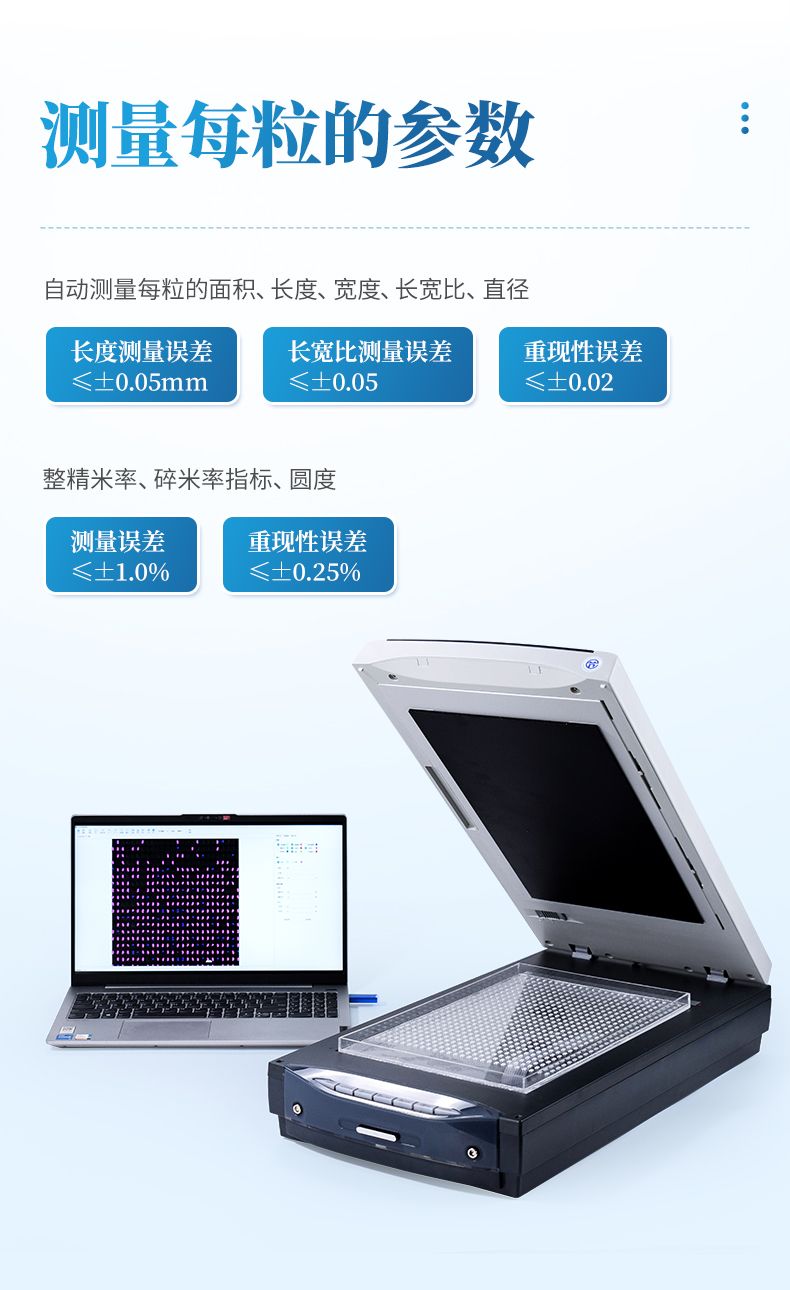 智能考種儀是一種用于種子數量、千粒重、種子形態等作物性狀指標的自動化測量設備。它采用了先進的圖像識別技術,可以快速準確地···